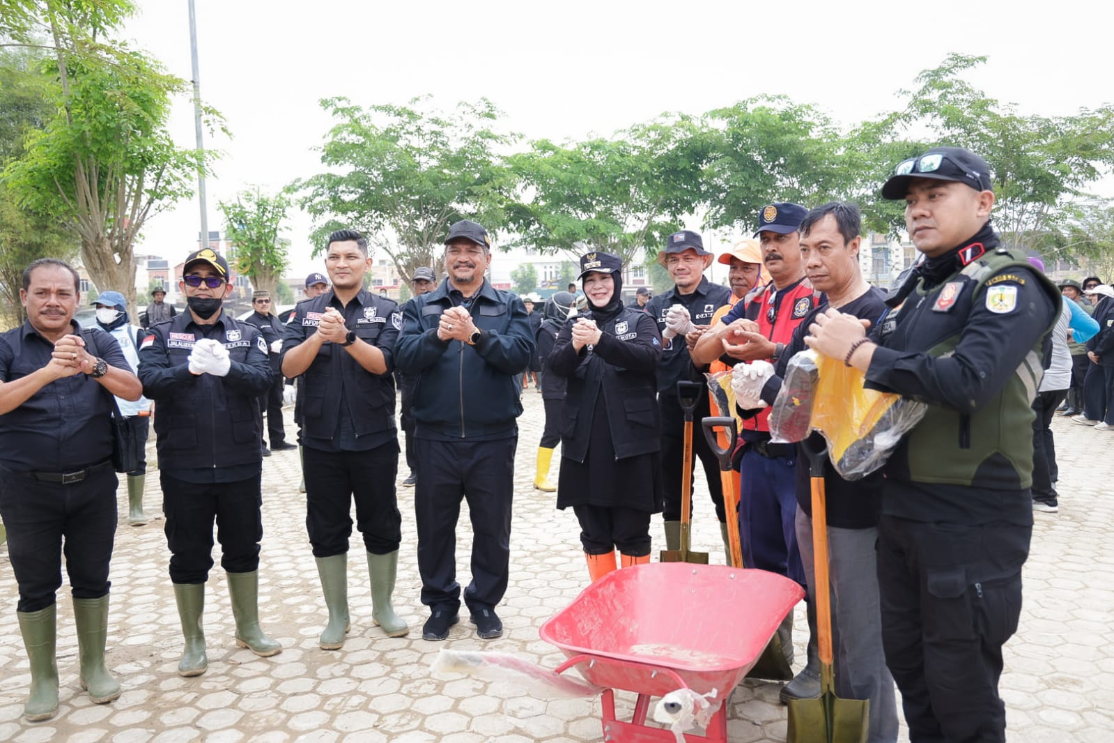 Dalam kesempatan itu Wali Kota Illiza menyerahkan paket bantuan sembako dan juga alat peralatan kebersihan seperti sekop, kereta sorong, sepatu bot yang diterima langsung Bupati Aceh Tamiang Armia Fahmi.