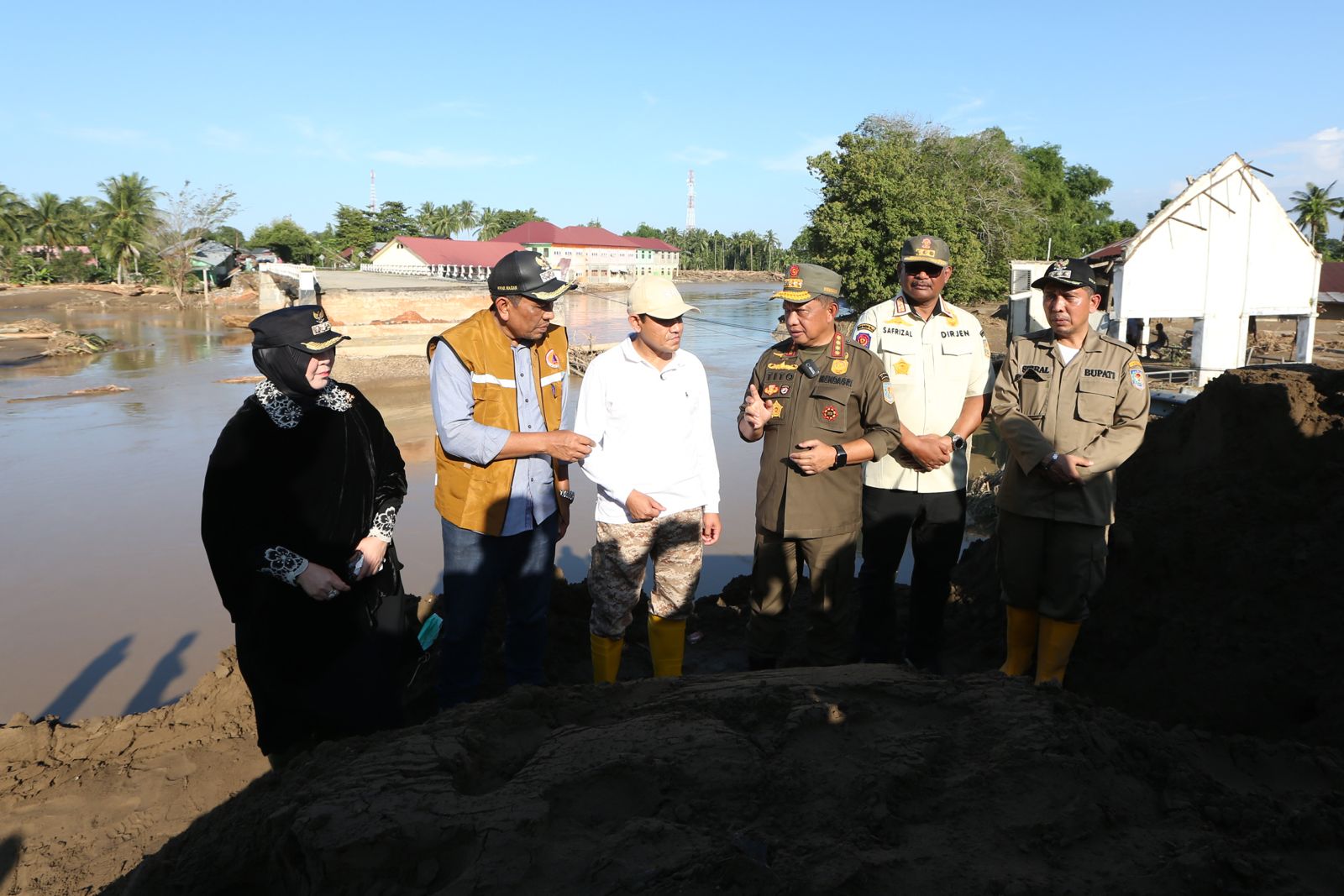 Pidie Jaya – Bersama Wakil Gubernur Aceh Fadhullah dan Kapolda Marzuki Ali Basyah, Wali Kota Banda Aceh Illiza Sa’aduddin Djamal turut mendampingi sejumlah pejabat tinggi negara ke lokasi bencana banjir akibat luapan Sungai Meureudu, Pidie Jaya, Sabtu, 29 November 2025.